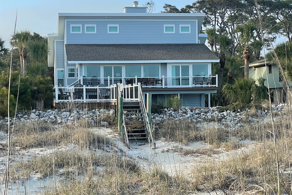 With spectacular views from every room in the house this amazing oceanfront home is sure to delight. A deck runs the full width of the rear of the house with a boardwalk connecting that deck to another deck sitting directly upon the beach, from here you have a private beach access.